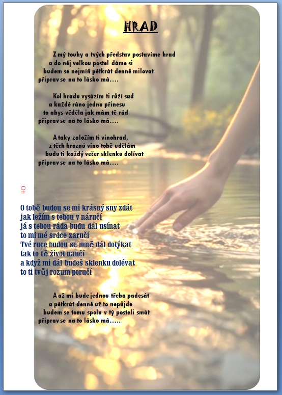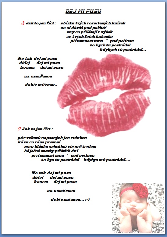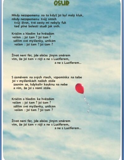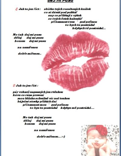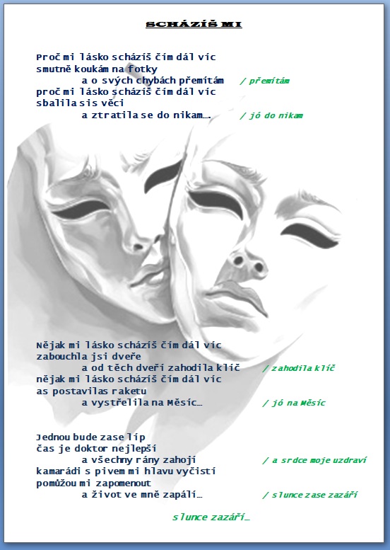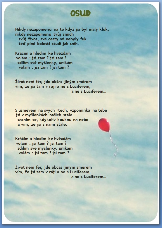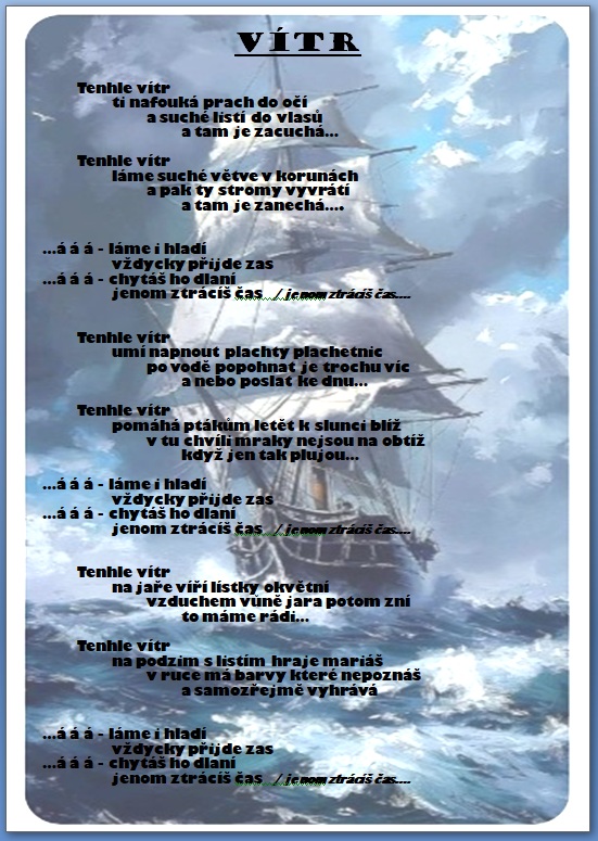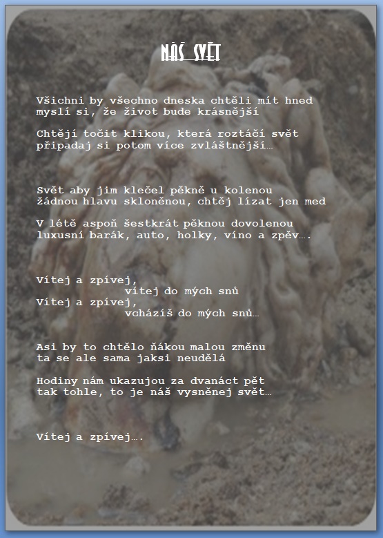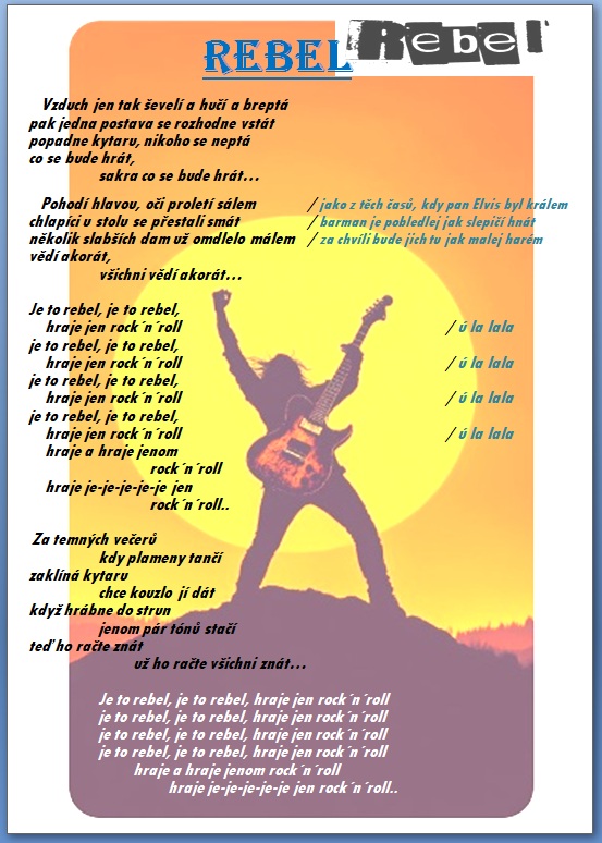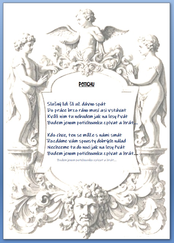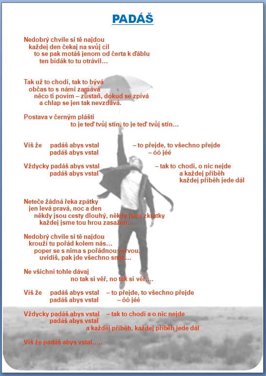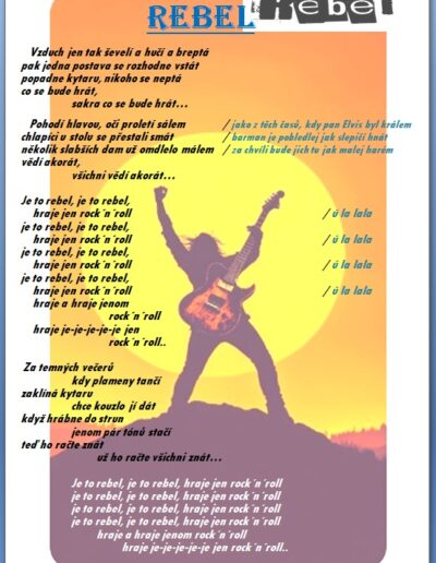 Jak jistě víte, skládáme si vlastní hudbu a texty 🙂 a protože bychom rádi, aby jste si na našich akcích s námi zazpívali, zavedli jsme tuto rubriku, kam budeme přidávat texty našich písní …….